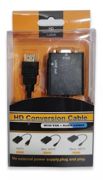 Adaptador HDMI a VGA para monitores o proyectores.