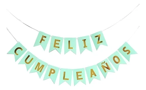 FESTON CUMPLEAÑOS BANDERIN VERDE MENTA